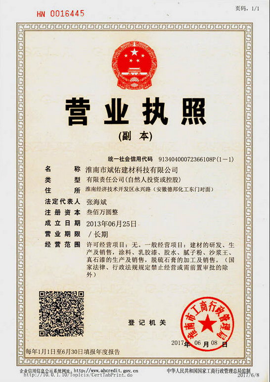 淮南市斌佑建材科技有限公司位于淮南經(jīng)濟(jì)技術(shù)開(kāi)發(fā)區(qū)永興路18號(hào),是一家從事各種類(lèi)型的涂料、內(nèi)外墻膩?zhàn)臃?、真石漆、水包水研制、生產(chǎn)、施工和銷(xiāo)售的優(yōu)良技術(shù)企業(yè)。引進(jìn)德國(guó)技術(shù)生產(chǎn)線(xiàn),年生產(chǎn)量4000噸。生產(chǎn)線(xiàn)采用控制自動(dòng)化設(shè)備,配備了專(zhuān)業(yè)的電腦自動(dòng)...